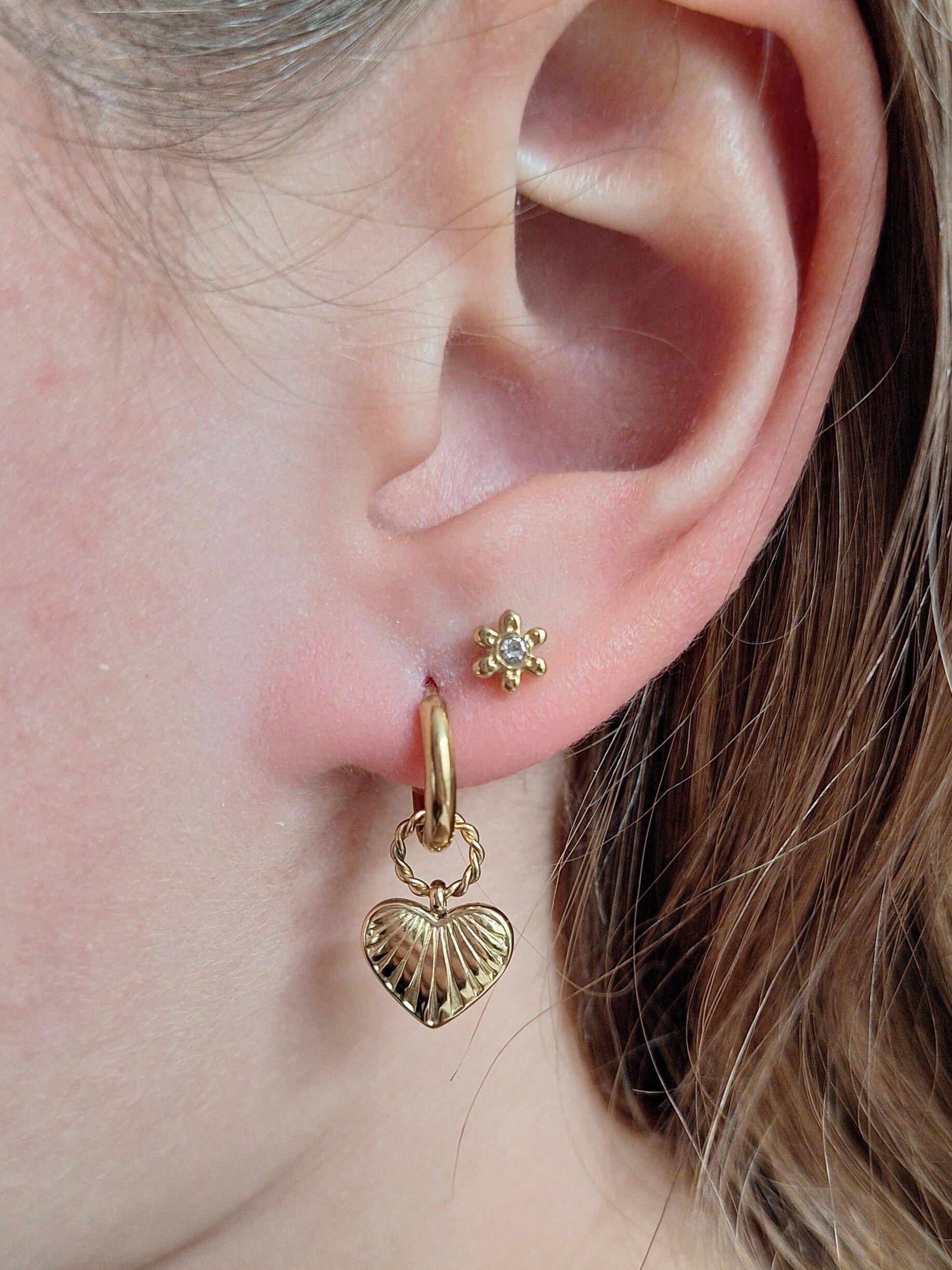 Deze schattige goudkleurige creooltjes met een lief stainless steel hartje zijn perfect voor kinderen die van subtiele en tijdloze sieraden houden. Met een fijn formaat van 12x2mm zijn ze comfortabel en licht om te dragen, terwijl het roestvrijstalen materiaal zorgt voor duurzaamheid en hypoallergene eigenschappen. Het minimalistische hartvormige bedeltje geeft de oorbellen een lieve en stijlvolle uitstraling, ideaal voor zowel dagelijks gebruik als speciale momenten. Een prachtige toevoeging aan elke kleine sieradencollectie!