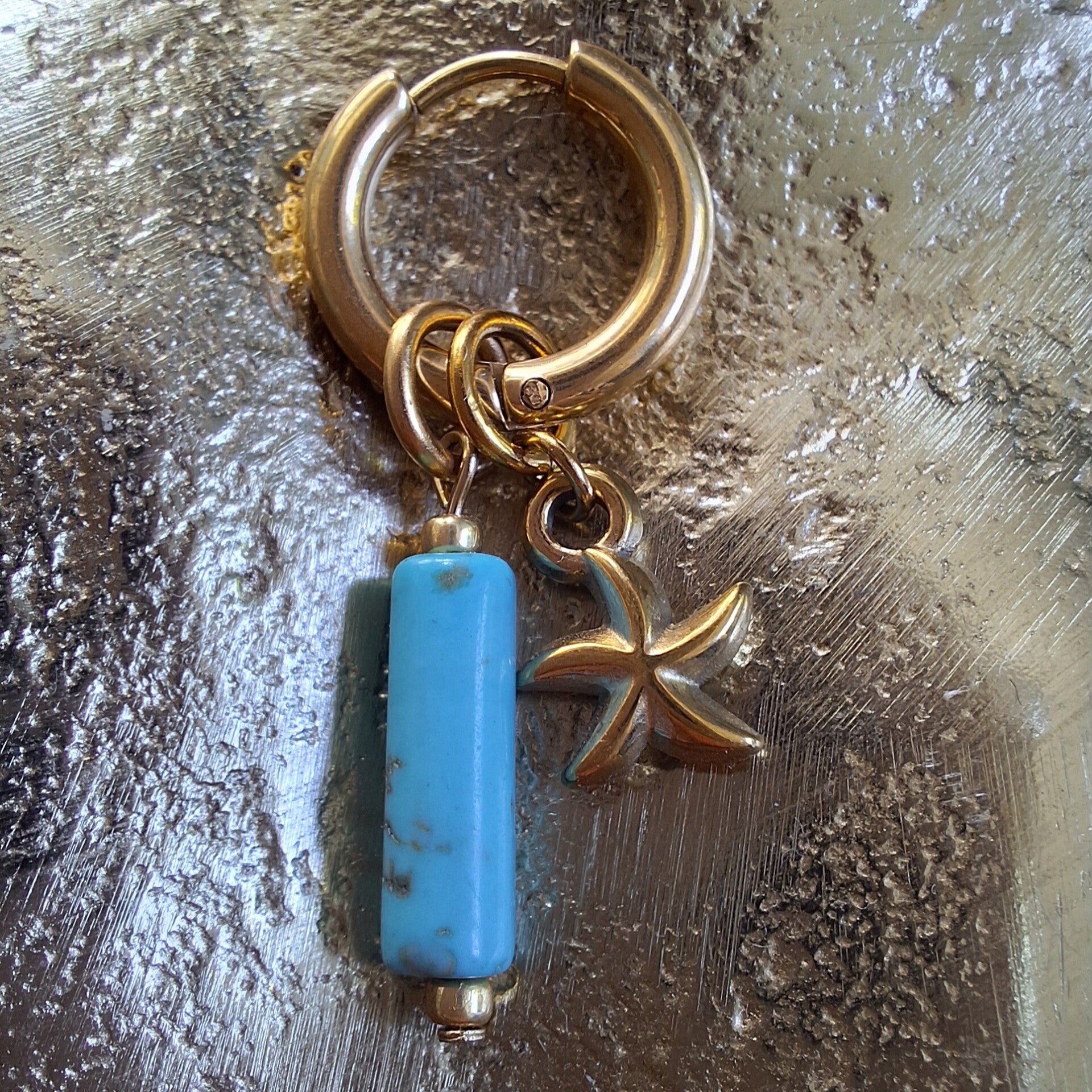 Creolen met blauwe Howliet en zeesterbedel