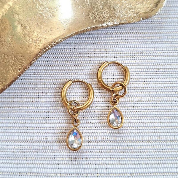 Deze elegante goudkleurige creolen (12 x 2 mm) zijn afgewerkt met een fijn kristallen glasbedeltje van RVS dat subtiel schittert bij elke beweging. Een tijdloos ontwerp met een vleugje glamour.