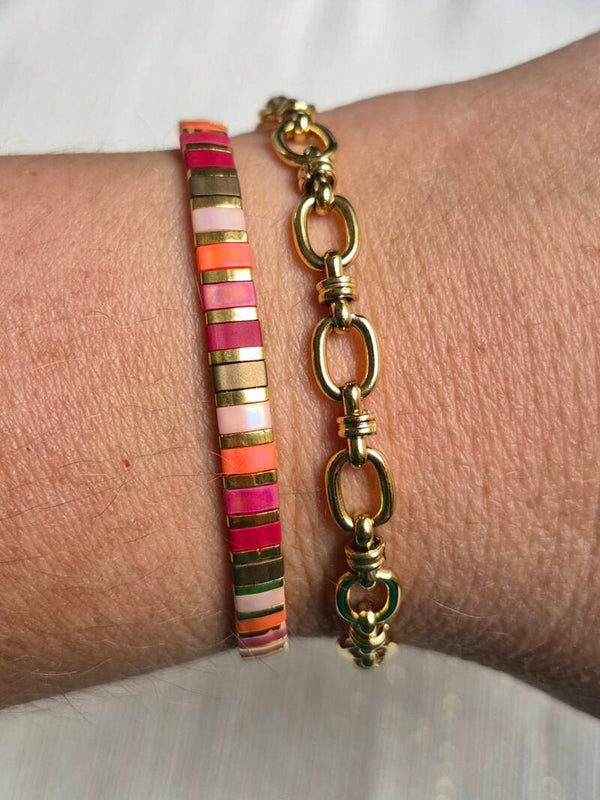 De Miyuki kralen armband is geregen op ultrasterk elastiek voor comfort en duurzaamheid. De stainless steel armband heeft een vaste lengte van 16 cm met een verlengketting van 5 cm, zodat hij flexibel past.