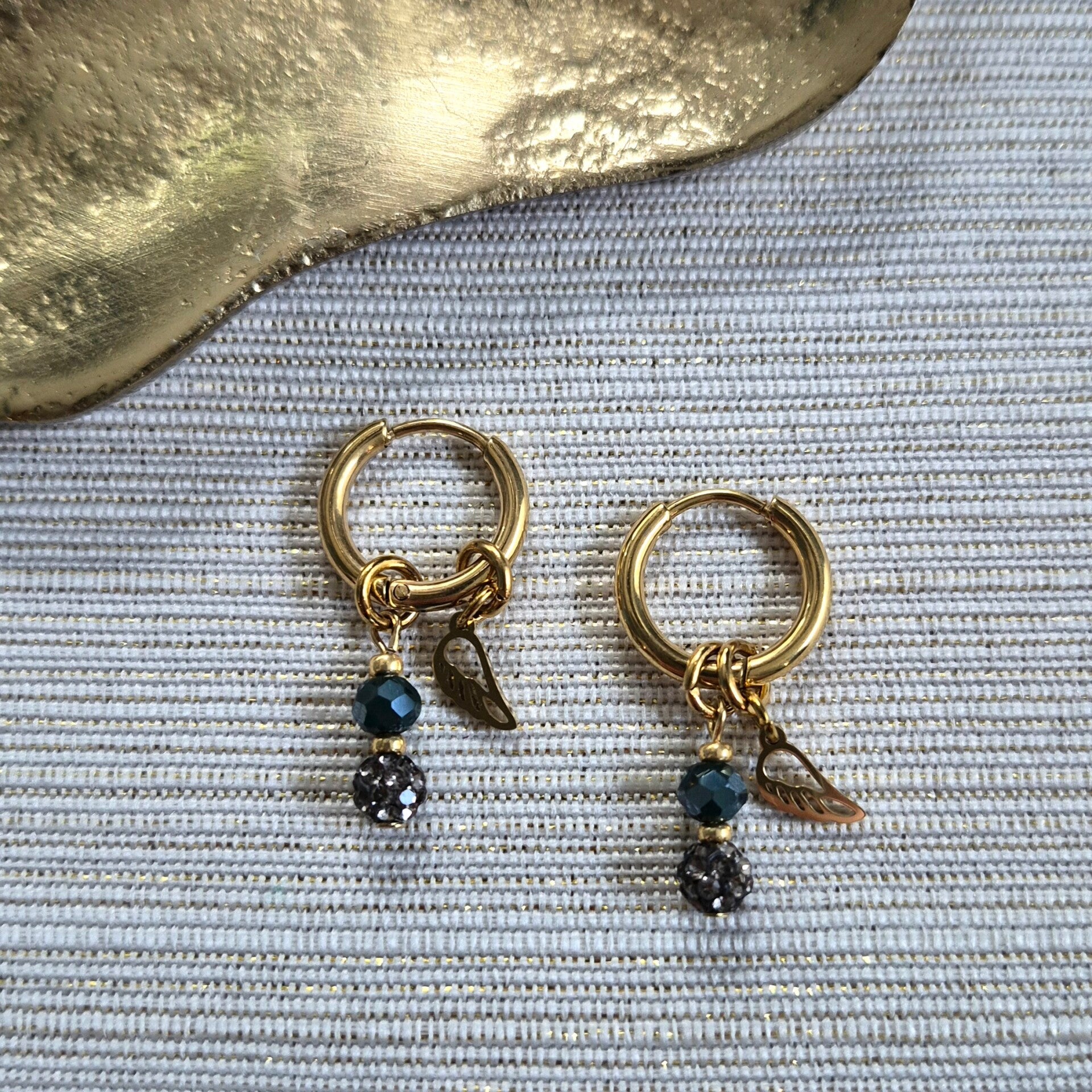 Creolen met kraaltjes en RVS engelenvleugeltje