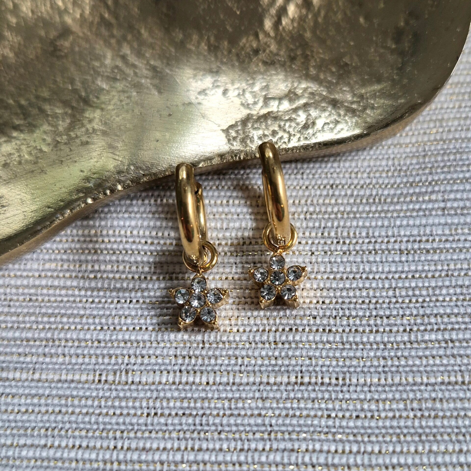 Deze goldplated RVS creolen hebben een subtiele en feestelijke uitstraling. De creolen zijn 12x2 mm groot en voorzien van een hanger met een klein RVS ijssterretje met witte steentjes. Perfect om je look tijdens de feestdagen of speciale gelegenheden een sprankelend accent te geven. Handgemaakt met oog voor detail en kwaliteit.