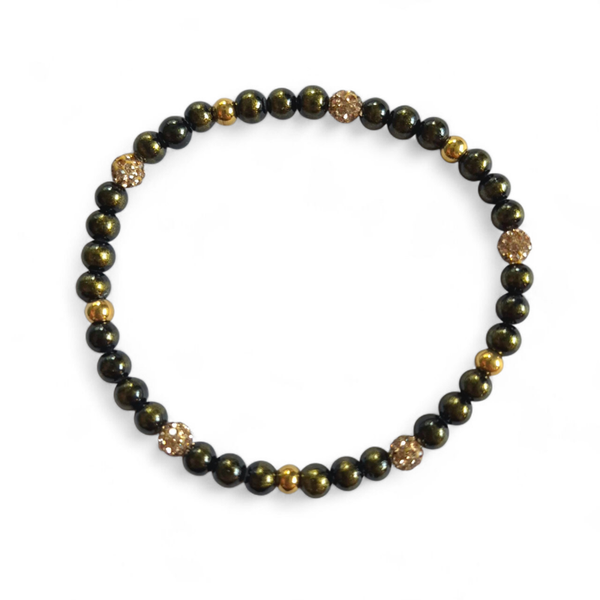 De warme glans van de jade in combinatie met de schittering van de sparkling beads geeft deze armband een elegante en luxe uitstraling — perfect om solo te dragen of te combineren met andere armbanden uit de collectie.