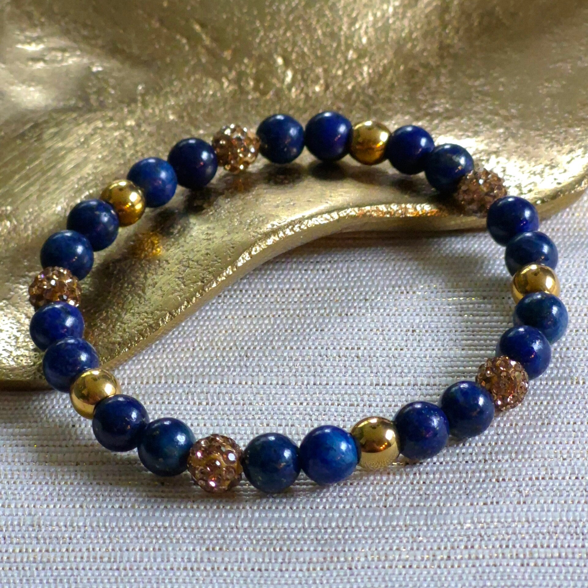 De diepe blauwe kleur van de lapis lazuli in combinatie met de glans van de sparkling beads geeft deze armband een stijlvolle en elegante uitstraling — perfect om solo te dragen of te combineren met andere armbanden uit de collectie.